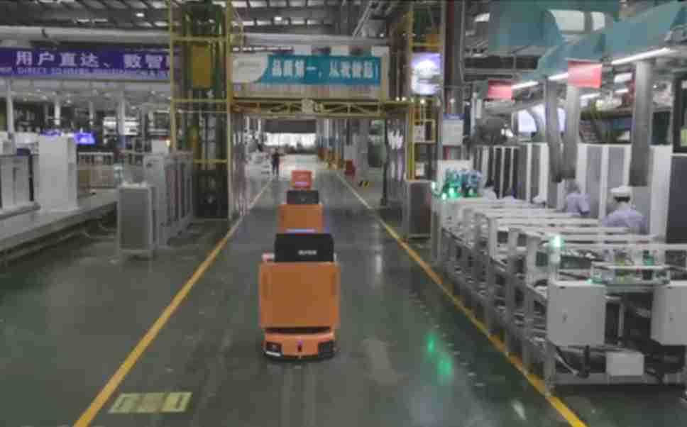 为车载冰箱物流配送打造的智能解决方案,,包含产中物流通过潜伏举升AMR搬运至线边,,,,产后成品物流智能仓储,,流程包含产中物流智能齐套入库,,,线边安灯叫料AMR智能配送至线边,,,成品入库、、、、出库,,,,通过无人堆高车机器人,,,,智能仓储管理替代人工作业管理,,,,实现更高存储、、、更高效率、、、更具柔性化的解决方案。。。